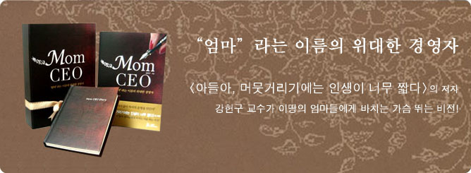 Å« ²ÞÀ» À×ÅÂÇÏ°í ±× ²ÞÀ» Ű¿ö°¡´Â À§´ëÇÑ CEOµéó·³, ¾ö¸¶°¡ °¡Á¤ÀÇ CEO°¡ µÇ¾î¾ß ÀÚ³àµéÀÇ ¹Ì·¡°¡ ¹Ù²ï´Ù. À¯´ÉÇÑ CEO·Î¼ °¡Á¤À» °æ¿µÇϰíÀÚ ÇÏ´Â ÀÇÁö¿Í ¿Á¤ ¾øÀÌ, ¾ÆÀÌ¿Í ³²Æí°ú °¡Á·ÀÇ ¹Ì·¡°¡ À§´ëÇØÁö±â¸¦ ¹Ù¶óÁö ¸¶¶ó! Á¤ÀÛ °¡Á¤ÀÇ ¼Ò¼ÒÇÑ ÀϵéÀº ¸ðµÎ Ã¥ÀÓÁö¸é¼µµ °¡Ä¡°üÀ» ¼¼¿ì°í ³»ÀÏÀÇ Ç©´ë¸¦ ¼¼¿ì´Â ÀÏ¿¡´Â ÁÖÃãÇß´ø ¾ö¸¶µé. ÀÌÁ¦ ¾ö¸¶°¡ ³ª¼³ Â÷·Ê´Ù.
