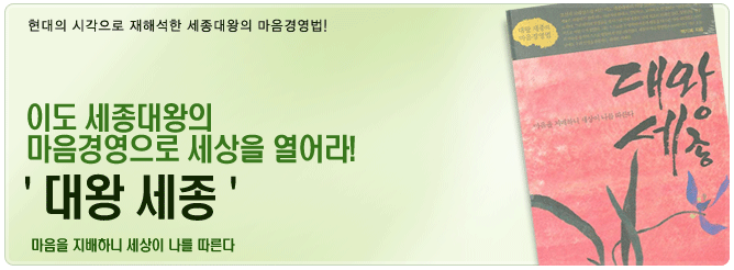 ¡º´ë¿Õ ¼¼Á¾¡»Àº 600³âÀÌ Áö³ ¿À´Ã³¯ '¿ì¸® ÀλýÀ» °üÅëÇÒ À§´ëÇÑ ÁöÇý'·Î À̵µ ¼¼Á¾ÀÇ ¸¶À½°æ¿µ¹ýÀ» ¼±ÅÃÇÏ¿´´Ù. <¼¼Á¾½Ç·Ï>, <¿¬·Á½Ç±â¼ú>¿¡¼ ¹ß°ßÇÑ ³»¿ëÀ» Åä´ë·Î ¼¼Á¾´ë¿ÕÀ» Çö´ë¿¡ ¸Â°Ô ÀçÆò°¡ÇÑ Ã¥À¸·Î, ÃÖ¸¸¸®, À±È¸, °Èñ¾È, ¹ÚÆØ³â, ÇÏÀ§Áö, ½Å¼÷ÁÖ µî ÁýÇöÀü Çлç 10ÀΰúÀÇ ÀÏÈ ¼Ó¿¡¼ ¸¶À½°æ¿µ¹ýÀÇ ±¸Ã¼ÀûÀÎ ½ÇÇö¹æ¹ýÀ» ã¾Æº¸¾Ò´Ù.